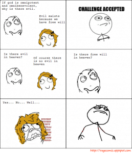 Daca esti familiarizata cu idea crestinilor despre D-zeu stii ca ei il cred perfect, atotputernic, fara greseala etc Totusi, in geneza D-zeu, il face pe om si apoi isi da seama ca are nevoie de o femeie, mai traziu, ii pare rau ca a facut po om, ii pare rau ca a adus potopul.